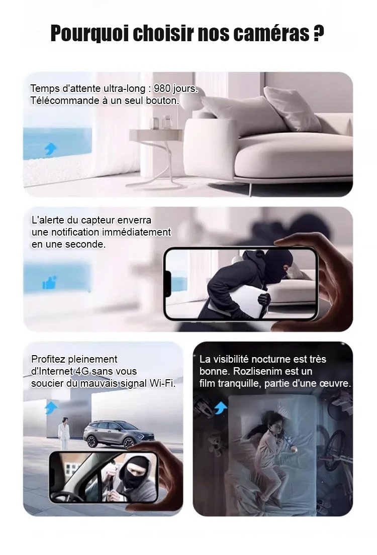 【3 mégapixels ultra haute définition】Caméra de surveillance sans fil à distance haute définition
